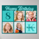 Chic 4 photo square birthday party poster decor for a trendy girl's birthday. Celebrate your child's birthday with four beautiful photographs of them on this add your own photograph print with turquoise squares. Add their name and age under Happy Birthday.