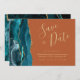 Chic Teal Blue Guld Agate - bränn eller spara datu Inbjudningar