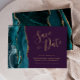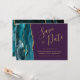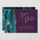 Chic Teal Blue Guld Agate Lila Spara datum Inbjudningar