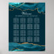 Chic teal och guld agat pryder toppen och botten på denna eleganta sittplatskarta. Vacker dekoration för en Bat Mitzvah eller födelsedagsfest med upp till 16 bord. Trendig, glamourös ram och vit typografi.