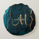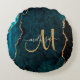Chic Teal Guld Glitter Agate Anpassningsbar Monogr Rund Kudde