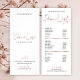 Chic Pris lista över tjänster i vita och ro guld med plats för din logotyp, företagsinformation och ditt pris för tjänster. Perfekt till använda som prismeny för hårstilisteritjänster, nagelsalon eller boutique. Skriptteckensnittet för elegant faux ro guld lägger till en chic och trendig till detta rackkort för prisguider. Använda det som en servicemeny för pub, konstnärer, spa, skönhetssalon eller andra produkter eller tjänster.