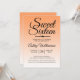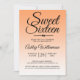 En chic av tropisk orange formgivning Söt 16-födelsedagsinbjudan. Den ljusa papaya-orangen tonas ut mot en vit bakgrund. Texten "Sweet sixteen" i svart står i modernt skript. Elegant 16 födelsedagsfest inbjudan för en glamorös Sweet sixteen, perfekt för henne, den modet som kärlek i modern mönster, lyx och glam med ett tropiskt sommarstrandtema. Enbart designad för dig av Lycklig Dolphin Studio.
