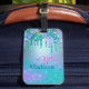 Chic turkos lila ombre glitter drops mongram bagagetapp. Vacker, modern och coola för den trendomsavundna och konsthungande höftledaren. Denna sofistikerade snyggt skulle vara underbar för flickor som har klassisk och sparsam design. Visa upp din personliga stil, se modern ut, trendig och känn snyggt och resa med stil med en unik design på en resetagg eller anpassa den till en annan produkt du vill ha. Att anpassa det som en gåva till valentines day, jul eller som en gåva i allmänhet är en underbar gåva till alla kvinnor som kärlek har en modern glatt elegans. OBSERVERA: Det här är platt tryckt grafik - ingen riktig glitter, juveler eller upphöjda delar.