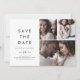 Den här chic-typografin 3-fotokollage sparar datumkortet är perfekt för ett modernt bröllop. Den enkla designen har klassiska minimalistiska svarta och vita typografi med en rustik boho-känsla. Anpassade i alla färg. Behålla designen minimal och elegant, som den är, eller anpassa den genom att lägga till egna bilder och teckningar.