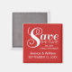 Meddela bröllop till vänner och familj med det här trendiget och den moderna Chicen Typografi Spara datum magneter. Den här designen har en enkel men elegant textdesign i vitt på mörkens röda bakgrund. Enkel att anpassa, lägg bara till informationen om bröllop i den fält som tillhandahålls. Klicka på knappen "Anpassa" för att hitta ytterligare anpassningsalternativ.
