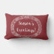 Den här handdragna julkranden är i vitt på djuprött med "Season's Greetings" i dekorativ skrift, även i vitt.