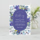 Chic vår dammsug blå mörk lila blommigt bröllop inbjudningar