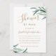 Trendig-typografi och chic vattenfärgsgrönt löv med guld färg på en vit möhippa genom e-postinbjudan. Denna moderna inbjudan är ett elegant för vänner och familj i inbjudan att duscha bruden för att vara med gåvor och kärleksfulla tankar från långt håll.