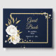 chic vit blommigt guld löv marin blå gäst bok
