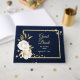 Vita blommor med vacker elegant med lite guld löv chic marin blå gäst bok. Uppgifterna om glitter simuleras