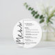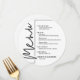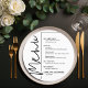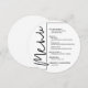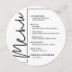 Ett runt svartvitt-menykort för middag innehåller dina menyval med chic-vita bokstäver, perfekt för ett modernt bröllopsmöte, bröllop-repetitionsmiddag, årsdag party eller speciella evenemang med en sittplatsmiddag. Anpassa enkelt dina val och detaljer till middagen. MER färg och större storlekar i vår butik.