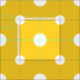 Ett mycket nätt tyg med ett mönster av vit, ojämn-storleksanpassad polka dots på en guld- gul bakgrund. Delen av den Posh och Painterly "daisyn kedjar" samlingen.