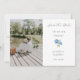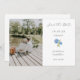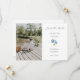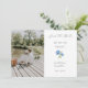 Den här vackra, så vackra chicen och det minimala, vita bröllop-kortet "Spara datum" visar ett par foto, en blommigt blå vattendesign, elegantens penselskripttext, händelsemedatum och adress, tillsammans med en contemporary av typsnitt. Youthful och trendig, det här vågrät anger en glatt ton.