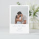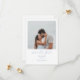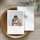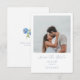 Den här vackra, så vackra chicen och det minimala, vita bröllop-kortet "Spara datum" visar ditt par foto, elegantens penseltext, händelsemedatum och adress, tillsammans med en contemporary av typsnitt i dammig blått. Baksidan innehåller ytterligare valfri text. Lämna den här textrutan tom om det inte behövs någon text här. Youthful och trendig, det här kortet anger en glatt ton. Använda Redigera verktyg om du vill ändra bakgrunden till färg om du vill.