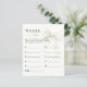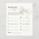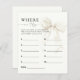 Snyggtens vita möhippa- spelkort "Var var de" med elegantens manus- typografi på en skarp, minimal bakgrund. Perfekt för att lägga till en roligt och ett interaktivt moment till en möhippa, möhippa eller bachelorettfest, särskilt för ett rotemat eller ett svartvitt firande. Gästerna gissar var parets foton kommer ifrån och skapar skratt och minnen. Koordinater med matchande inbjudningar, décor och stationär i samma chic med vit buskdesign.