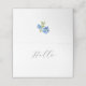 Minimal, chic och vanligt vitt kort.. Det här platskortet i bröllop bord innehåller ett modernt skriptteckensnitt, en rad för handskrift av gäst namn, en illustration av blommigten i baksidan av kortet samt ett "tack"-meddelande på kortets insida.