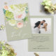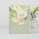Vackra vattenfärger i vita och grönt vattenspel med rosa och grädde ro, daisy, små blommar och löv finns på framsidan av dessa sädesslag i grönt bröllop tack vare dina kort. Ditt foto och meddelande skrivs ut på baksidan. MATCHING-objekt i vår samling.