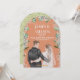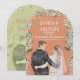 Romantic watercolor wedding invitation featuring a bride and groom with soft floral greenery frame on a warm terracotta background. Perfect for rustic, boho, and garden weddings. Printable template.