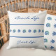 Anpassa det här Rand Beach House Dekorativ kudde med din familj Namn, utmärkelsen Kustens Chic för er reträtt i havet. Med Elegantens Snäckor och Fisk utplånar kudden havets karm och lugn. I Beach House Decor, som kompletteras av Thin Navy Blue Rand mot en Crisp White-bakgrund, framhävs ett klassiskt nautiskt estetiskt. Även perfekt som Snyggt Beach Houseuppvärminggåva.