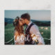 Chic White Calligraphy Photo Bröllop Tack Vykort