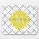 Chic White Grått Quatrefoil Gult Monogrammed Namn Musmatta