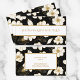 Snyggt affärskort med guld accenterade vita blommor på svart och dina detaljer på framsidan och baksidan med chic. Anpassa det här affärskortet till att vara unikt för dig. Anpassa eller redigera ytterligare genom att klicka på länken "anpassa ytterligare".