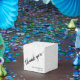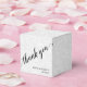 Elegant vit på vit filigree-utskrift mönster med namn och tack i chic på framsidan. De här 2-tums fyrkantiga favoritrutorna är vackra för bröllopsfavörer, möhippa-favörer eller något speciellt tillfälle.