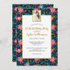 Fira en speciell person med den vackra festinbjudan som innehåller ett foto och din händelseinformation omges av en utskriven faux guld gräns - allt mot en rosa, blå, grönt, svart blommigt. Perfekt för en födelsedag, baby eller möhippa, pension, årsdag och så mycket mer. Underbar kvalitet och så lätt att anpassa sig.