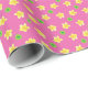 En rulle av söt Giftwrap, med mönster av gult primroses och grönt polka dots mot djup Rosa: ingår i samlingen Posh & Painterly 'Primroses'.