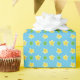 En rulle av söt Giftwrap, med mönster av gult primroses och grönt Polka dots på turkobakgrunden: en del av samlingen Posh & Painterly 'Primroses'.