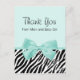 En chic akvamarin-flickdusch tack vare ett vykort med trendiget zebra tryck och ett gigantiskt färskflitigt band som är bundet till en söt bugg. Anpassa den här feminina djurtryckningen i flicka-duschen tack vare att du har lagt till ett speciellt tack till ryggen. Platt utskriven bild, inte egentligt menyfliksområde.