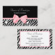 Ett trendig svart och vitt zebra tryck boutique-affärskort med ett gigantiskt ljust rosa band som är bundet till en söt båge. Anpassa den här chicens djurutskriftsdesign genom att lägga till säljledarens namn. Platt utskriven bild, inte egentligt menyfliksområde.