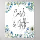 Chica blå blommiga handskrivna skriptkort och pres poster