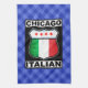 Chicago Italienskt mönster, i stil på en coola amerikansk vägskylt. Texten Chicago Italienska ligger längst upp och grund, med flagga av Chicago och flagga av Italien inuti linjetecknet. Underbar för cikaganer av italiensk härkomst och för f.d. roter i staden Windy.