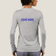 Grafik t-shirt med Chicago Illinois skyline. Blått med lila färg. Chicagoskylinen är på framsidan av den här treblend-skjortan. Baksidan har "CHICAGO". Ändra texten på baksidan eller lämnan som den är. Använda mallen för att skapa din egen anpassningsbar t-shirt.