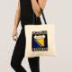 Den klassiska stil-konstruktionsskölden, med texten Chicago-bosnien, och flaggor i staden Chciago och Bosnien och Hercegovina