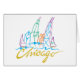 Chicago Whimsical Script, Chicago Skyline i enkel linjer med elegant färg