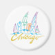 Chicago Whimsical Script, Chicago Skyline i enkel linjer med elegant färg