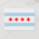 Utformning baserad på Chicagos flagga med vit, ljusblå rand och röda stjärnor.