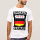 Chicagotysk konstruktion, i stil på en coola amerikansk vägskylt. Texten Chicago-tyska ligger längst upp och grund, med flagga av Chicago och flagga Tyskland inuti linjetecknet. Underbar för cikaganer av tyskt ursprung och för f.d. roter i staden Windy.