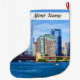 Ett dynamiskt Chicagocitycape har en mängd moderna skyscraper och stiga upp byggnad mot ett tydligt blå himmel. Förgrundsinformationen domineras av en lugn i vatten där man kan se båtar.