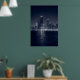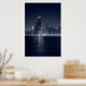 Chicago, Illinois skyline på natten i svartvitt. Bilden har en lätt blå ton efter design.
