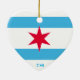 Celebrate your love for Chicago with this beautiful ceramic ornament featuring the iconic six-pointed star from the city's official flag. Perfect for decorating your Christmas tree or year-round display, this keepsake is an excellent gift for residents, travelers, or anyone who holds a special place in their heart for the Windy City and Illinois. It comes in various shapes, including the heart shown.