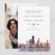 Detta eleganta Chicago-skyline akvarell bröllops kortspara-inbjudan kan anpassas med din information i modern typografi och speciellt foto på baksidan. Designad av Thisisnotme©