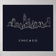 Den här designen har en skiss av Chicagoskylinen i hand plockade på mörkens bakgrund.