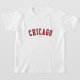 Kontrollera ut denna Chicago t-skjorta! Är du från Chicago, Illinois? Har du en vän eller en familjemedlem som älskar Chicago, Illinois? Om så, är denna "baner" t-skjorta exakt gåvan som du söker efter! Designen presenterar "Chicago" i välvd röd bokstäver i klassikerhögskolastilsorten.