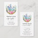 Boho Måne Crystal Cluster med Rosa ros Flowers och Guld Crescent Måne Design Affärskorts. Perfekt för massage Reiki Yoga Clinic och spa. Redo för din info.