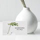 Slimmad, ren vit inredingsdesign affärskort med företagsinformation om designern på baksidan. En liten accentfabrik ger perfekten ett minimalistiskt foto för dessa moderna dekoratorkort. Visa chicens estetiska dekanter stil med den vackra lilla växten i ett fritt vas på ett vitt bord.