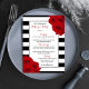 Den moderna lyxen bröllop-samlingen i chic har en klassisk svart och vit rand-bakgrund som accentueras med vackra ruby röd ros och en faux silver foil ram. Dessa menykort är lätta att anpassa och kommer att vara perfektens tillbehör till alla bröllop, möhippor, födelsedagsfester, förlovning firande eller andra särskilda tillfällen.